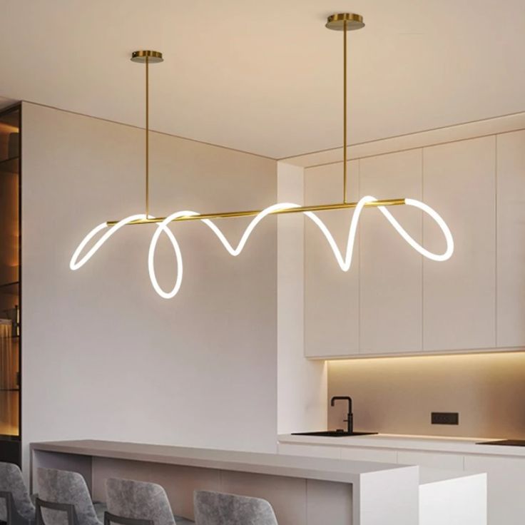 Add an artistic statement to your home with this Gold Modern LED Linear Chandelier, a stunning blend of creativity and minimalism. Featuring a flexible silica gel light bar that you can shape to your liking, paired with a sleek gold-finished metal frame, this pendant chandelier becomes a bold focal point in any modern kitchen, dining area, or living space. Height adjustable and easy to install, it's both functional and fashion-forward lighting at its finest.