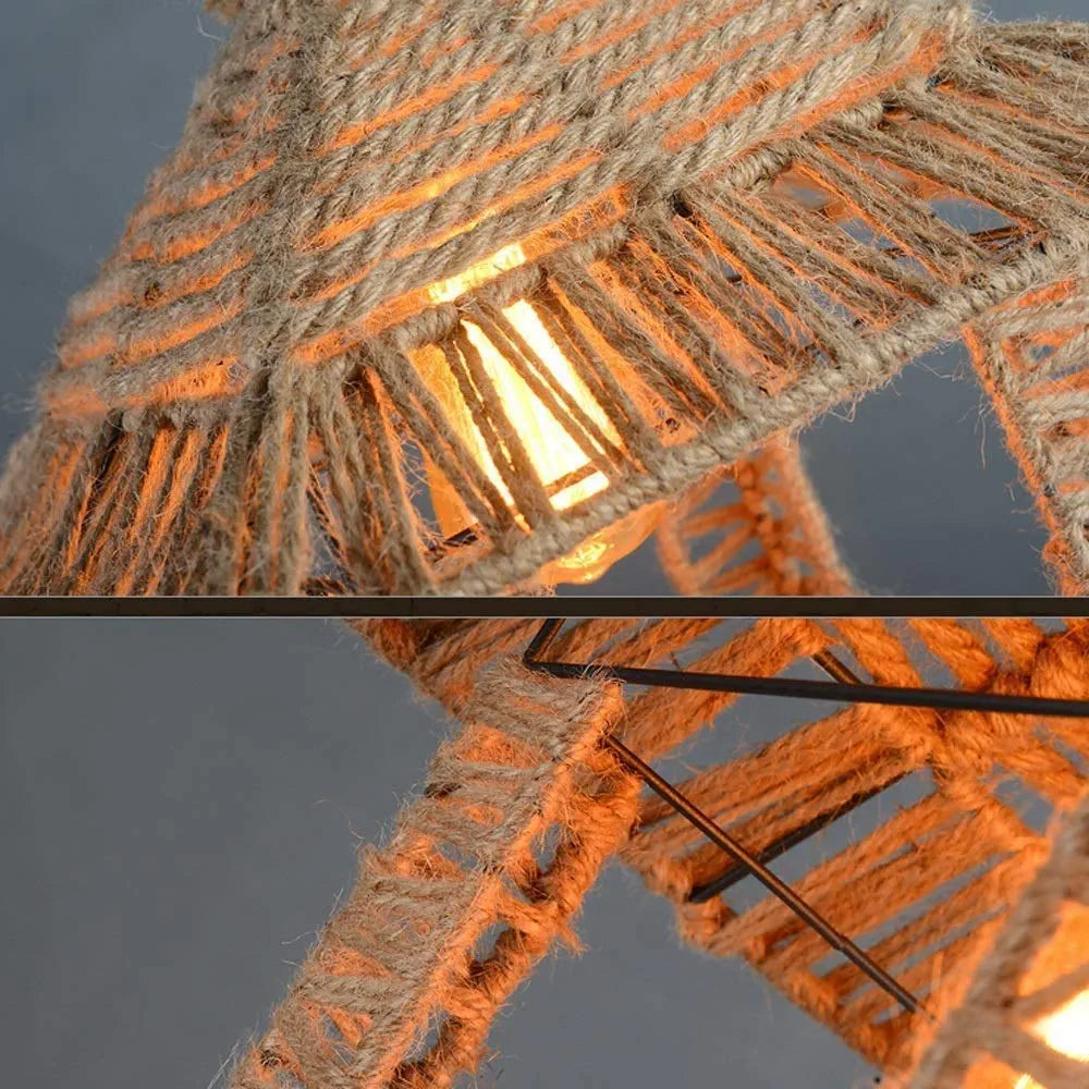 Hemp Rope Cage Pendant Light – Vintage Industrial Charm for Any Space