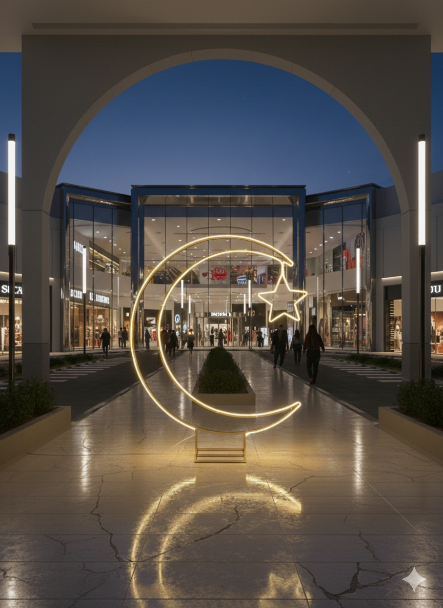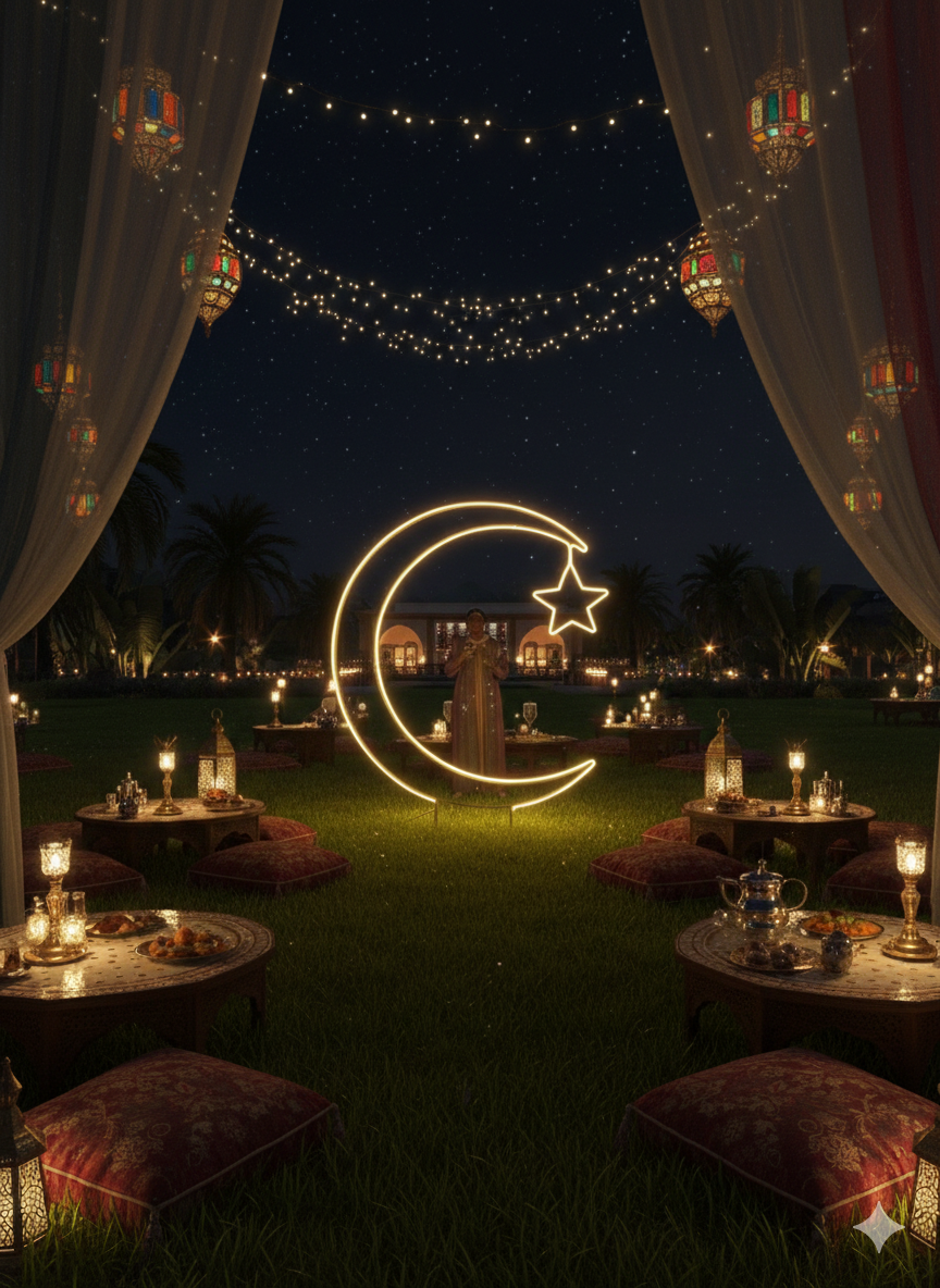 Illuminate your celebrations with a statement piece that bridges the gap between tradition and modern luxury. This masterfully crafted freestanding neon sculpture features a brilliant golden-warm LED glow in the iconic shape of the crescent moon and star. Designed for high-impact visual appeal, it serves as a mesmerizing focal point for villa entrances, luxury malls, and festive garden gatherings. Whether you are welcoming guests for Ramadan, an elegant wedding, or a corporate gala, this durable yet lightweight installation brings a touch of celestial magic to any setting.
