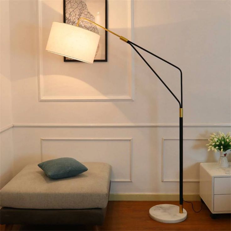 Modern Arc Floor Lamp β Black Iron Stand with Marble Base & Drum Fabric Shade